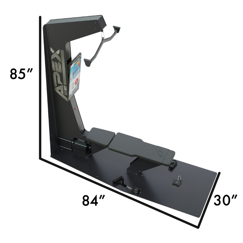 The Apex not only revolutionizes strength training but does so while maintaining a compact footprint. Measuring just 85 inches in height, 84 inches in length, and 30 inches in width, this space-saving design makes it an ideal choice for home gyms, urban apartments, and even professional training facilities that prioritize both functionality and aesthetics. Its modest dimensions are a testament to the ingenuity behind the design, ensuring users don't have to compromise between space and performance. With the Apex, world-class fitness is now accessible in the comfort of one's own space, no matter its size